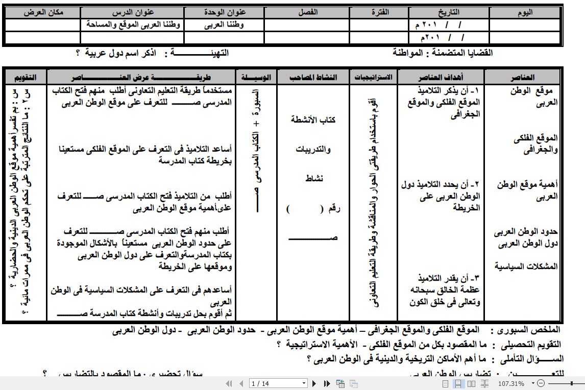 تحضير جاهز للدراسات الأجتماعية الصف الأول والثاني الأعدادي بالطريقة العرضية